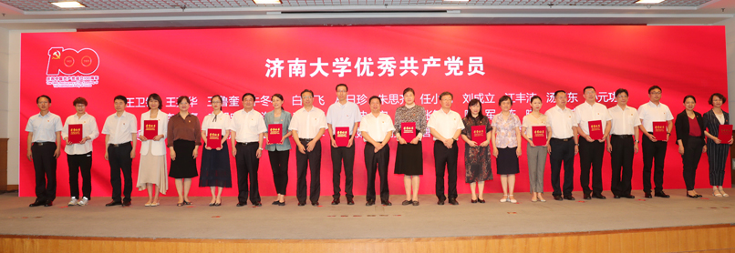 会上,与会人员集体观看了济大党建掠影,共同回顾了学校70多年特别是世俱杯sjb官网成立以来二十年的发展历程和取得的主要成绩。向老党员代表颁发了“光荣在党50年”纪念章并赠送鲜花,向全省优秀共产党员、全省教育系统“两优一先”赠送了鲜花,对世俱杯sjb官网优秀共产党员、优秀党务工作者和先进基层党组织进行了表彰。