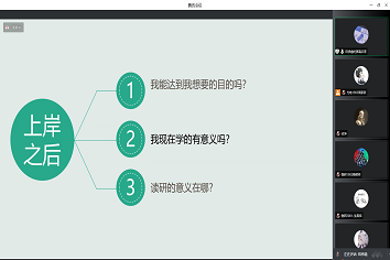 为了帮助大三、大四同学们认清考研与就业的形势,早日确立人生方向,尽快走出因临近毕业而出现的迷茫状态,世俱杯sjb官网心理生涯服务中心于11月5日在线上通过腾讯会议召开了“剑指研峰”考研经验交流会,听取往届优秀考研生的经验介绍和方法指导,为有考研准备的同学提供经验借鉴。