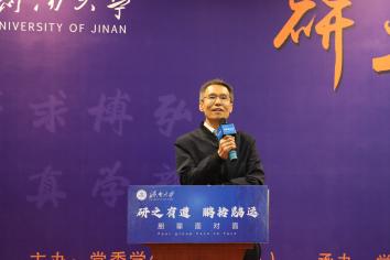学院党委书记郑爱华进行总结发言,向同学们介绍了近年来物理学院考研情况。郑书记讲到,学院始终以学风建设为主线,以考研就业、科创为抓手,创优争先,考研录取率从2017年的32.2%、2018年的34.1%,到2019至今始终稳定在40%以上。从学院领导班子到专任教师,从辅导员到班主任,尽心尽力,帮助同学们在考研的道路上走得更远。