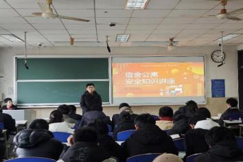 卢洪斌老师阐述了学生公寓安全的重要意义,他强调,宿舍安全环境不仅关系到每个人的生命财产安全,也关系到学生的前途和发展。他列举近几年优秀宿舍作为榜样,深入阐述了大学生宿舍环境对于个人成长发展的重要性,提醒同学们树立安全防范意识,筑牢安全底线。自律会宿管部部长郝启翔结合实际生活中发生的校园安全案例,通过播放高校火灾安全事故警示视频,特别强调宿舍内存在的各种安全隐患,提醒宿舍用电安全,禁止使用大功率电器,提醒同学们时刻牢记“安全至上,生命第一”的理念。随后,他通过现实生活中大学生被骗、被盗的真实案例和相关讲解、分析,帮助同学们提高财产安全意识。