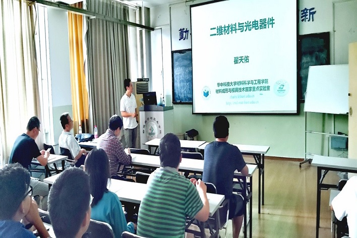 翟教授围绕二维材料的化学气相精准合成及其高效光电探测器的构筑,介绍了相关研究工作。报告分为多种二维层状材料的化学气相沉积的可控制备、自限制生长策略、二维分子晶体、能带工程调控等多个方面,内容翔实,展现了该领域的前沿工作。翟教授的报告深入浅出,对广大师生学习二维材料光电器件和开展学术研究具有重要的指导意义,受到大家的热烈欢迎。