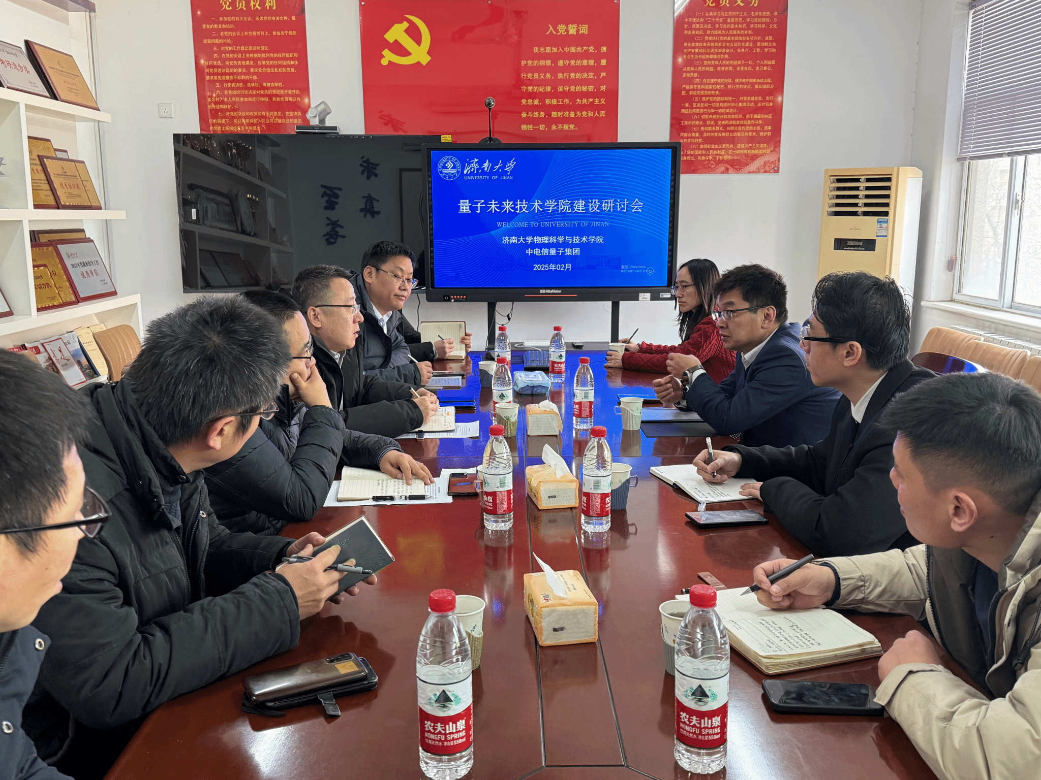 近日,中电信量子集团华北公司副总经理洪泰辉一行参加世俱杯sjb官网量子未来技术学院建设研讨会。院长徐锡金、副院长李洪蕾及学院相关人员参加会议,会议由徐锡金主持。