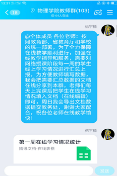 这是一条全力保障之路!为了保障教师们能够顺利开展线上教学,世俱杯sjb官网教学管理人员也是全力以赴地做好各项工作。为了有效提升教师在线教学能力,教办主任伍宇楠老师全力提供线上教学培训、技术解答、协调服务等保障工作。伍老师深入了解教师的培训效果和在线教学实际需求,积极联系传达学校的各类在线教学平台提供技术支持,组织学院老师们加入“雨课堂培训”微信和QQ群、“超星学习通”QQ群、“钉钉在线教学”群等多个在线培训群,配合学院技术人员做好在线教学咨询指导和教师相互间的经验交流工作。为保障在线课程的授课质量,伍老师积极协调、主动服务相关老师更新完善视频、习题等学习资料。他每日几乎是全天在线,及时分享在线教学的学习资料、文件,协调各平台及时解决教师的问题。