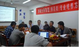 教学院长张仲教授主持整个论证会,推选高思杰教授任专家组组长。首先由王少清院长致欢迎词,热情欢迎各位专家的指导,并对学院的整体情况和物理系的情况做了简要介绍。然后由物理系系主任金毅教授对整个2018版培养方案的论证做了整体汇报。接下来五位专家结合自己学校的物理专业建设,就本次培养方案的修正,在专业课程的学分比重、专业实验的开设、实习实践、创新学分、双语课程及全英文授课等方面进行了深入论证,并特别结合师范专业认证问题进行了全面探讨。各位专家对培养方案给予了充分肯定,并提出很多宝贵的建设性意见。整个论证会最后由郑爱华书记做总结发言,对各位专家的悉心指导表示了感谢,并希望借此机会,以后能够和各个学校的物理专业建立良好的交流关系。