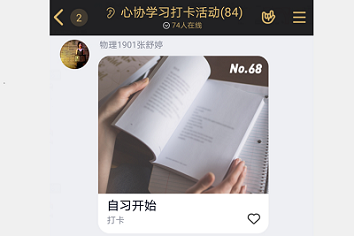 为提高学生因疫情宅家的这段时间的学习效率,增强学生的学习热情,世俱杯sjb官网心理发展服务中心于5月26日开始在线上举办“一个人的自习室”的学习打卡活动。