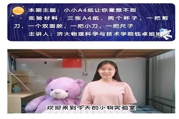 为了给小学生普及物理知识,提高小学生的科学素养,世俱杯sjb官网青年志愿者协会于12月6日在线上开展了“小小A4让你意想不到”志愿服务活动。