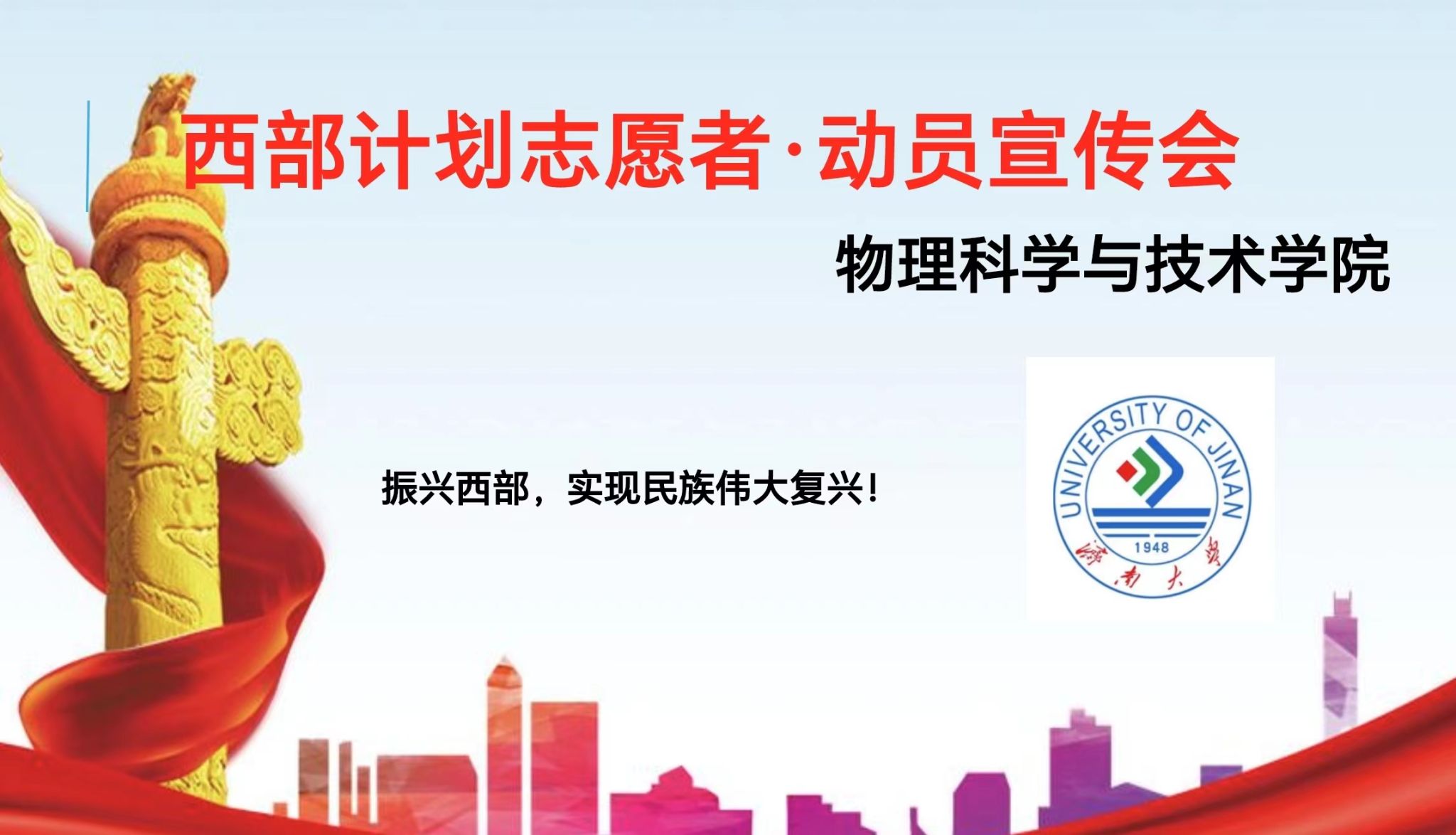 为进一步推动西部地区经济社会发展,引导青年力量参与西部建设,世俱杯sjb官网物理学院西部计划志愿者的动员宣讲会于11月24日在世俱杯sjb官网隆重举行。本次宣讲会由世俱杯sjb官网主办,与物理学院志愿者共同探讨西部地区的发展问题,助推脱贫攻坚工作,以鼓舞激励更多青年大学生投身西部建设。