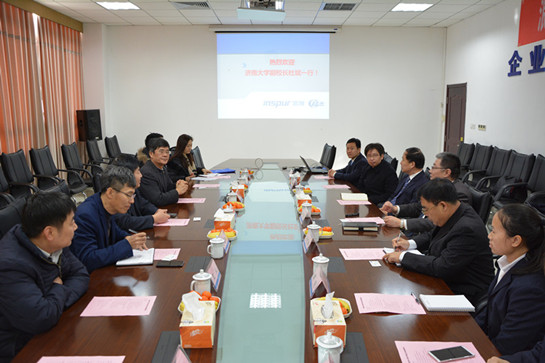 副校长杜斌、院长王少清详细介绍了学校、学院在科研、学生就业等方面情况,浪潮集团副总裁、浪潮华光总经理肖成峰就企业技术优势、涉足领域、发展前景等内容进行介绍,双方对建立多方位的战略合作事宜交换了意见,对项目对接、学生培养、人才交流、成果转化、实习就业等一系列问题进行深入探讨。