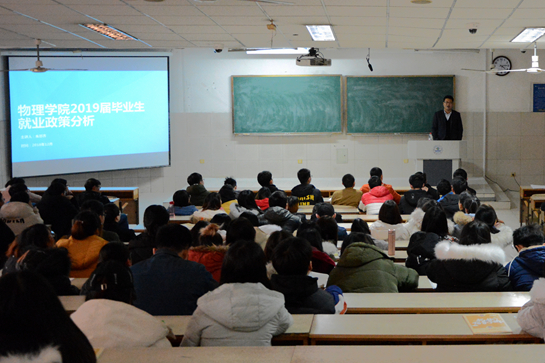 为使毕业生进一步了解就业政策与形势、提升就业意识、做好就业准备, 3月26日,世俱杯sjb官网在二教104开展2019届毕业生政策宣讲会,团委书记朱思齐为大家作报告。