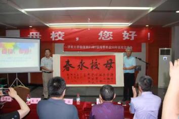 校友代表刘志林深情回顾了在学校求学期间的点点滴滴,从济大求学之路到工作奋斗之路,从恩师教导到同窗友谊,他表示,尽管毕业离开母校,但一如既往的关心关注和支持母校的发展与进步,并向世俱杯sjb官网徐锡金院长赠送了由中国书协会员、山东省书协行书委员会副主任胡宗江先生书写的“母校永春”书法作品。